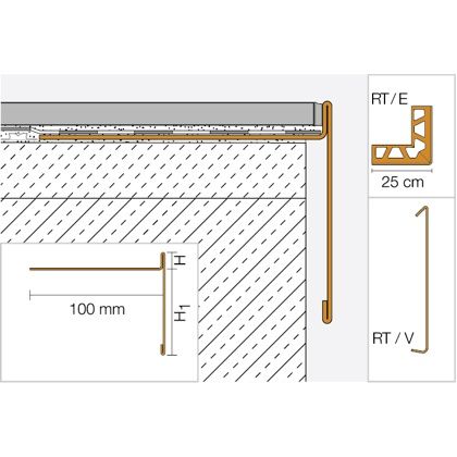 Upozornění: Jako výškově stavitelný krycí profil z lakovaného hliníku stejné barvy je k dispozici Schlüter-BARA-RHA. Nasazuje se na Schlüter-BARA-RT, slouží k ukon čení volných hran balkonů a teras a vytváří opticky čisté ukončení hrany konstrukce.