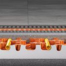 Schlüter-BEKOTEC-EN-FI je potěrová deska s výlisky z tlakově stabilní hlubokotažné polystyrénové fólie s 30 mm tepelnou a kročejovou izolací z EPS pro uchycení topného potrubí Schlüter (Ø 14/16 mm). Zkosené výlisky udržují definovaný rozestup potrubí (rastr 75 mm). BEKOTEC desky se spojují překrytím jedné řady do sebe navzájem zapadajících výlisků. Dodržením minimální krycí vrstvy 8 mm (max. 25 mm), použitím standardního cementového potěru nebo potěru na bázi síranu vápenatého (pevnost v tlaku C20–C35 / pevnost v tahu za ohybu F4 max. F5) a topného potrubí BEKOTEC-THERM-HR trvale zamezíte vzniku trhlin v dlažbě z keramiky nebo přírodního kamene. Krycí vrstvy a provedení pro alternativní krytiny naleznete v technické příručce.