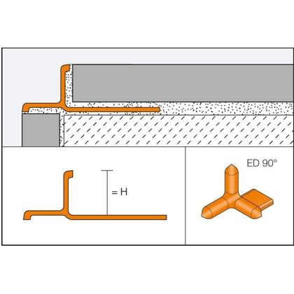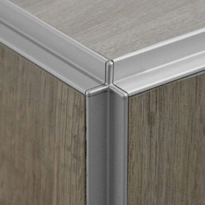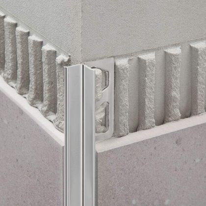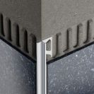 Kvalitní ukončovací profil z eloxovaného hliníku pro vnější rohy stěn a ukončení obkladů. Pohledová plocha profilu vytváří ozdobný vnitřní kout - polodrážku.
