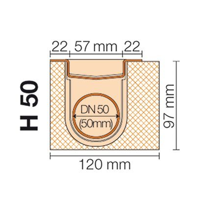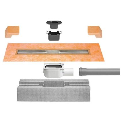 Kompletní sada pro lineární sprchy v úrovni polahy, s horizontálním odtokem.