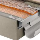 Schlüter-BARA-RTK se lepí s lichoběžníkovitě perforovaným kotevním ramenem hydraulicky tuhnoucím lepidlem v oblasti volných hran.