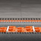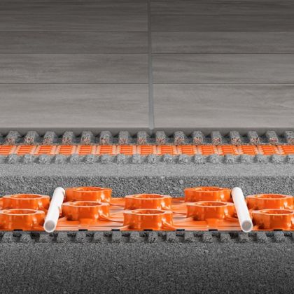 Schlüter-BEKOTEC-EN-FK je potěrová deska s výlisky z tlakově stabilní hlubobkotažné polystyrénové fólie, která je na spodní straně opatřena nosnou střiží. Lepí se jako kontaktní systém celoplošně na vhodný podklad roznášející zátěž. Zkosené výlisky udržují definovaný rozestup potrubí (rastr 50 mm). BEKOTEC desky se spojují překrytím jedné řady do sebe navzájem zapadajících výlisků. Dodržením minimální krycí vrstvy 8 mm (max. 15 mm), použitím standartního cementového potěru nebo potěru na bázi síranu vápenatého (pevnost v tlaku C20-C35 / pevnost v tahu za ohybu F4 max. F5) a topného potrubí BEKOTEC-THERM-HR trvale zamezíte vzniku trhlin v dlažbě z keramiky nebo přírodního kamene.