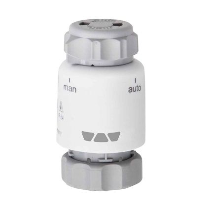 Montáž se provádí s použitím šroubů (M30 x 1,5) na ventily vratného potrubí rozdělovače topných okruhů Schlüter, provedení IP54 (ochrana proti stříkající vodě). Ventil je při dodání otevřený (funkce first-open) a při provozu jej lze manuálně nastavovat (funkce re-open), ventil je bez proudu zavřený. Délka připojovacího kabelu činí 1 m.