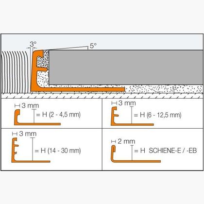 Vymezovačem spáry, který je tvarován u profilu od výšky 6 mm (u SCHIENE-ES od výšky 8 mm) je definována šířka spáry k dlažbě. SCHIENE může být ve všech materiálech opatřena speciální perforací „R“, která umožňuje ohýbání profilu do žádaného poloměru.