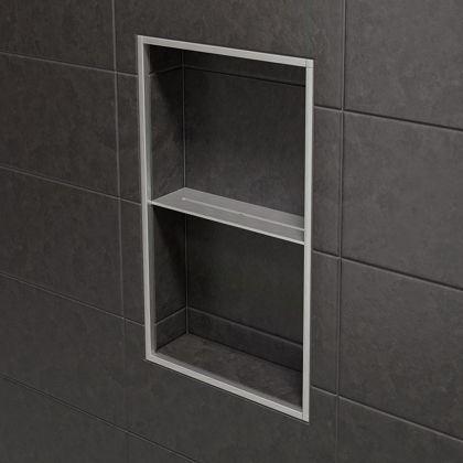 Do niky ze Schlüter-KERDI-BOARD-N se Schlüter-SHELF-N instaluje snadno při obkládání. Polička vytvoří ve vaší nice prostřední odkládací plochu a bude opticky ladit s TRENDLINE profily a s odvodněním KERDI-LINE-STYLE a KERDI-DRAIN-STYLE.