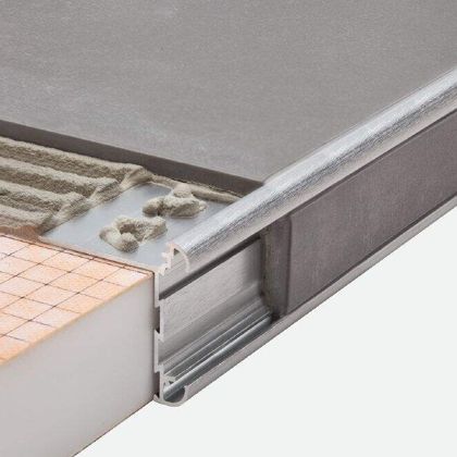 Profil pro hrany kuchyňských pracovních desek nebo odkládacích ploch s keramickým obkladem. K profilu lze napojit obklad horní strany nebo umístit jiné dekorativní prvky.
