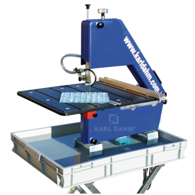 Řezačka velkoformátových keramických desek se třemi řeznými kolečky.